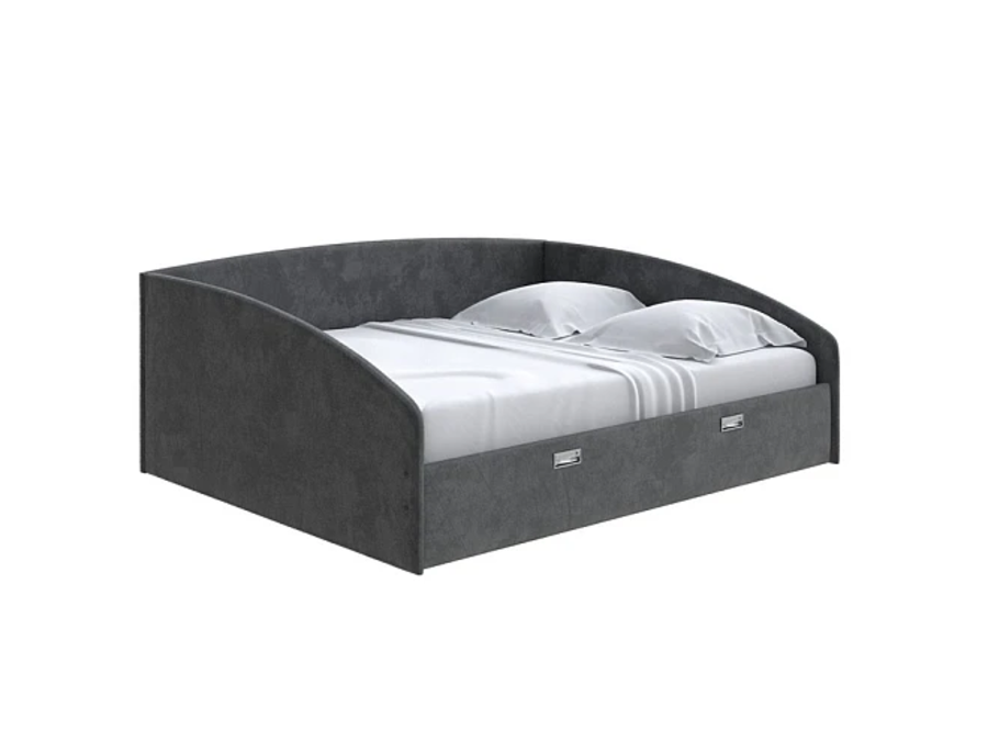 Двуспальная версия имеет увеличенное спальное место и усиленный каркас, рассчитанный на повышенные нагрузки. Внешне она сохраняет стильный тканевый дизайн и удобные выкатные ящики снизу.