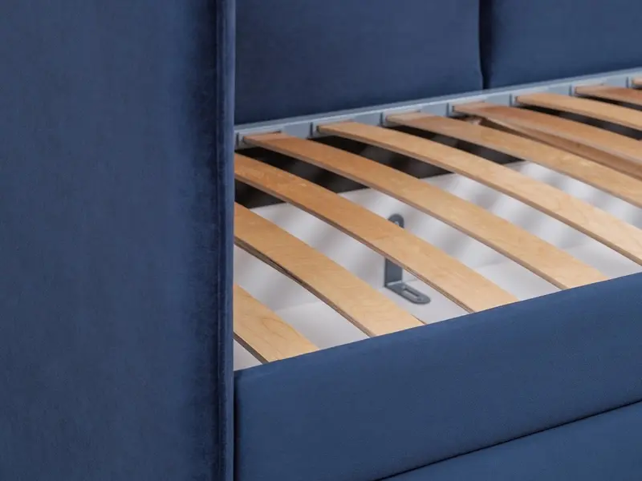 Кровать оснащена металлическим основанием с ламелями, которое позволит усилить анатомические свойства матраса.